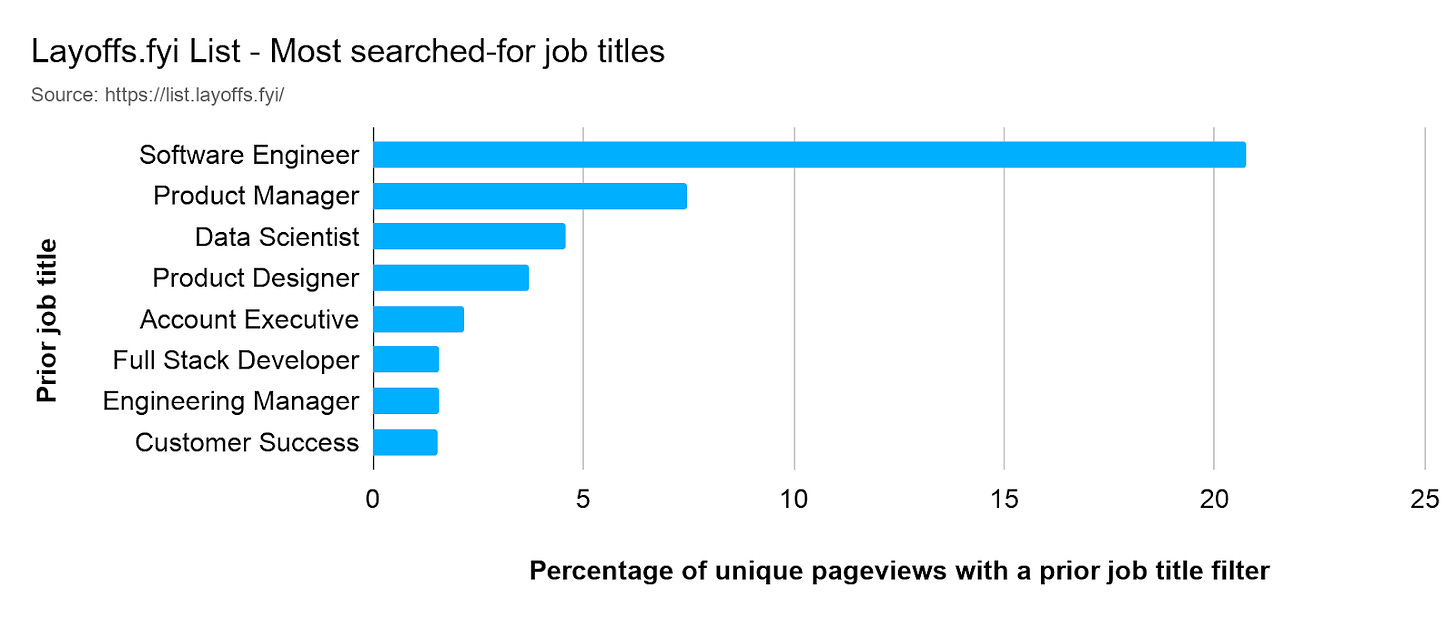 According to Techcrunch, 168,243 tech workers have been laid off in 2023 through May 5. This year, it’s mostly been software engineers after last year’s HR and marketing personell. Anecdotally, I bet this number is somewhat higher. My friends have told me the job market has never been this bad. Extremely skilled people I know who never went two weeks without a job are now languishing months without so much as a bite of interest. The recruiters I talk to say hiring standards are out of control and they have very few openings. Everyone agrees many if not most of the actual job listings are fake, posted to make teams feel that help is on the way while companies overwork them, when in fact they have no intention of actually filling those roles.
